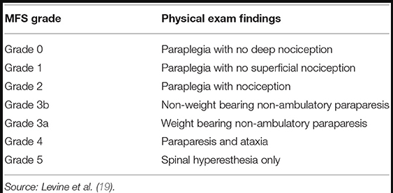 In the study, they used an outcome measure called the Modified Frankel Score (MFS). The MFS provides an assessment of spinal cord function. What you can see in the graph is the grade improvement over the 12 week period with nonsurgical rehabilitation.